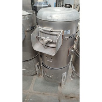- Peeler unit as cylindrical construction, heliarcwelded stainless steel with abrasive permanently bonded on interior surface of peeling hopper